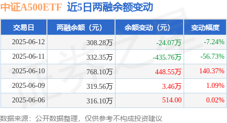 本站消息,6月12日,中证A500ETF(560510)融资买入0.47万元,融资偿还24.54万元,融资净卖出24.07万元,融资余额308.28万元。